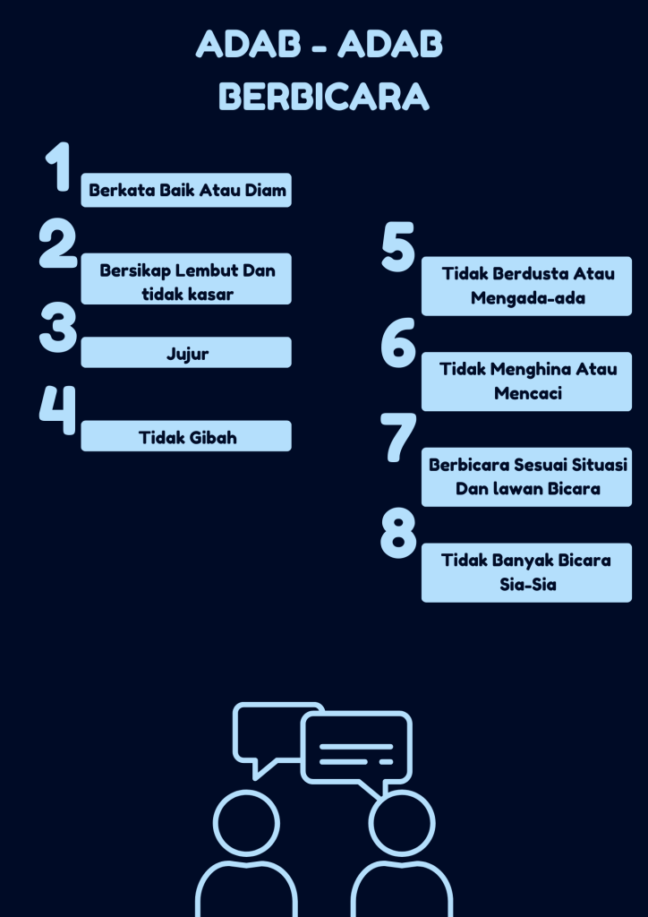 Asslamu’alaikum warohmatullahi wabarokatuh, This is my dinyah project, in this project i make an instagram post with theme Adab Berbicara , so here there is attitude when we are Talking Each other, There is 8 atitude in this poster and it was same what i learn.