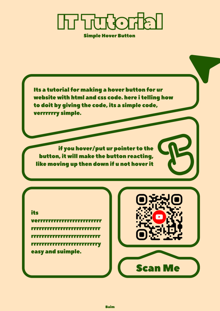 Its a tutorial for making a hover button for ur website with html and css code. here i telling how to doit by giving the code, its a simple code, verrrrrry simple.