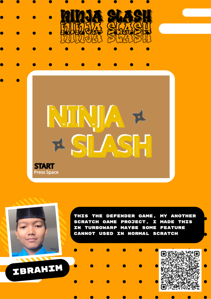 In this project, I made a scratch game called Ninja Slash. in this game you must slashing the fruit and avoid the bomb with your hand or else, there is 2 kind of fruit watermelon and apple, if your score is 10 you will win but if your score -1 you will lose. oh ya apple and watermelon will add the score and Bombs will reduce your score