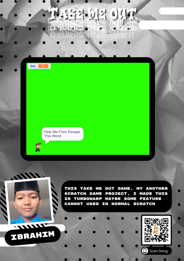 Assalamu’alaikum, This is Take Me Out Game, my another scratch game project, I made this Game in turbowarp maybe some feature cannot used in normal scratch, It consist of 3 level (Lv1, Lv2, Lv3) In lv 1 we must collect the Orb, Lv 2 we must answer the question, lv 3 We must dodge the obstacle. ok maybe just that from me wassalamu’alaikum.