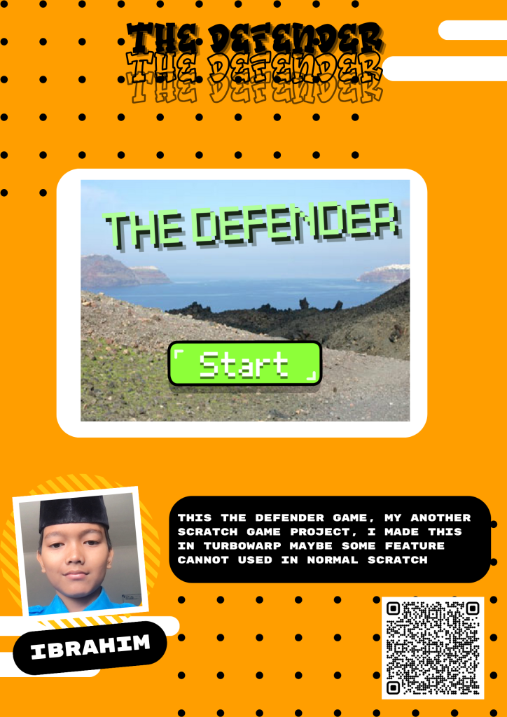 In this project, I made a scratch game called The Defender. in this game you must protect your base from blue enemy with your tank, there is 3 level (Easy, Medium, Hard), If boss health finished you will win, but if your health finished you will lose
